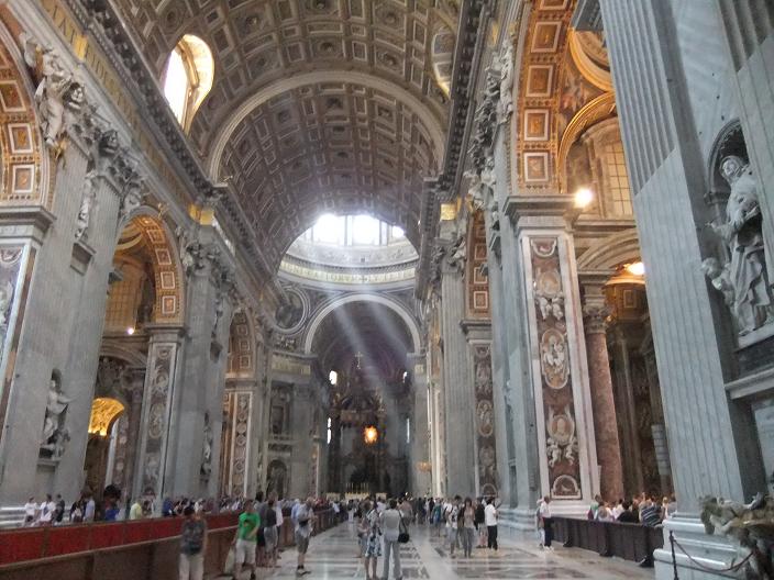 カトリック教会の総本山と言われているだけあって今まで行った教会の中でも一番大きく見ごたえがありました。クーポラへは途中までエレベータで行きそこからは階段で上りました。頂上は狭く混んでいましたが、サン・ピエトロ広場が上からよく見えローマの街を一望できよかったでした。