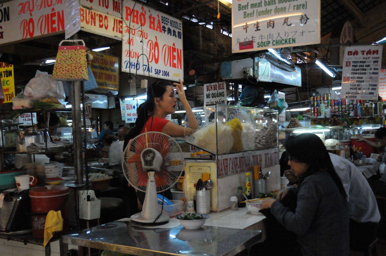 広い敷地にびっしりとお店がありますが、売っているものはどこも似たり寄ったり。それでもぶらぶらしているだけでホーチミンの熱気を感じることができて楽しいです。朝食を食べ過ぎて自分は食べられなかったのですが、フォーの店やチェーの店があってとてもおいしそうでした。