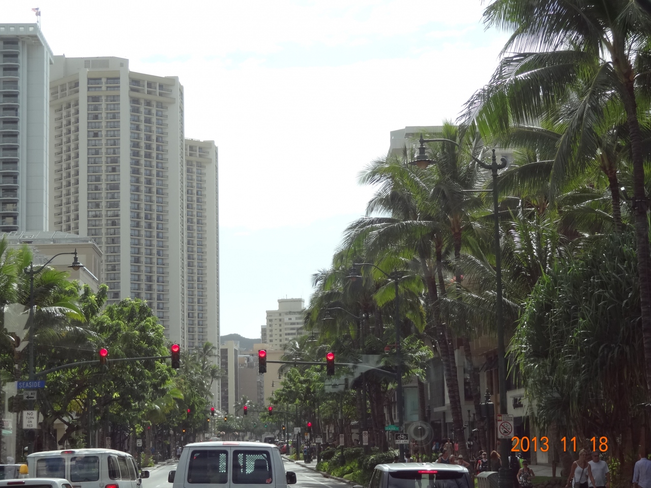 沿道には、様々なホテルやレストランやブランドのお店が立ち並び、ここだけでハワイに来た気分に浸れる感じです。