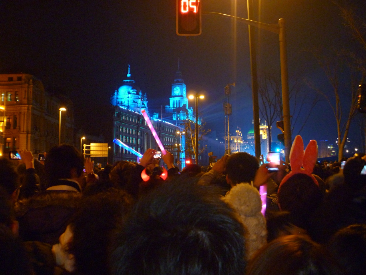 夜には浦東の新しいネオンと、バンド側のヨーロピアンな照明が合わさって