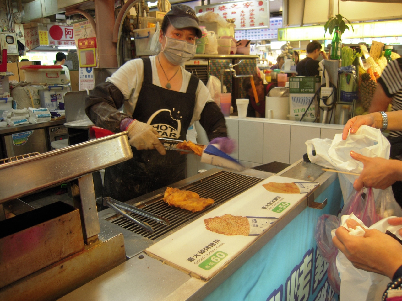 士林夜市は電車の剣潭(1番出口)で降りると直ぐに屋台がある。