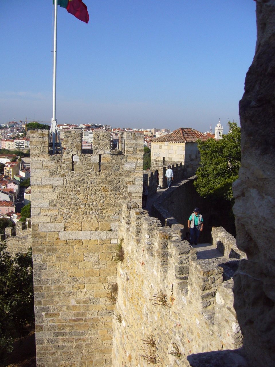 リスボン市内を見渡すと同時に、サン・ジョルジェ城内部の城壁を、