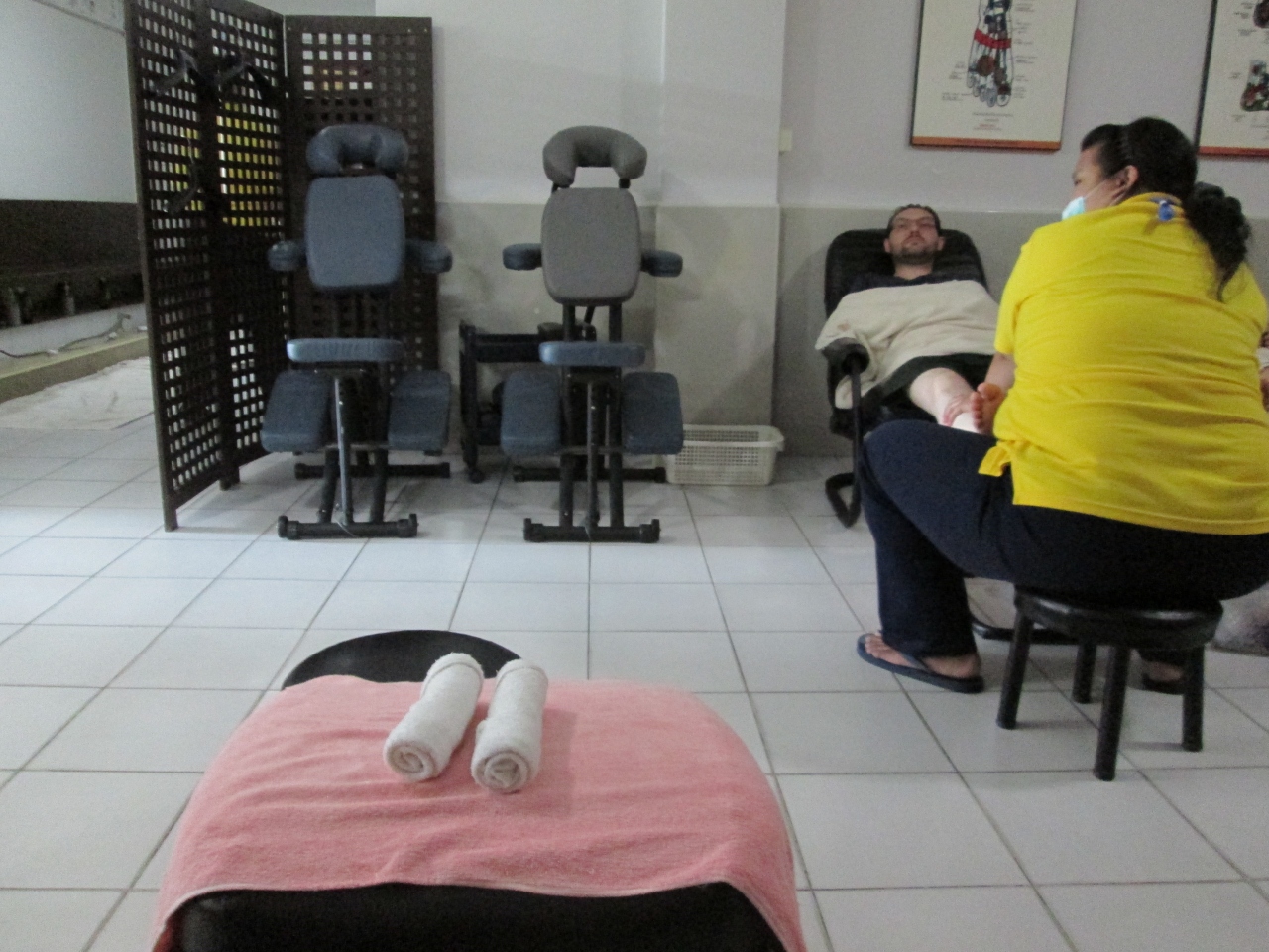 電話予約ではなく、プロンポンに訪問したついでに店に直接訪問して予約します。受付の方は男女4名ぐらいの方がおられますが、全員、日本語が話せこちらの話しを完璧に聞きとります。トラブルなくいつも予約できています。タイ今回のバンコクの滞在では、日曜日の16時頃に訪問しましたが、混雑していました。