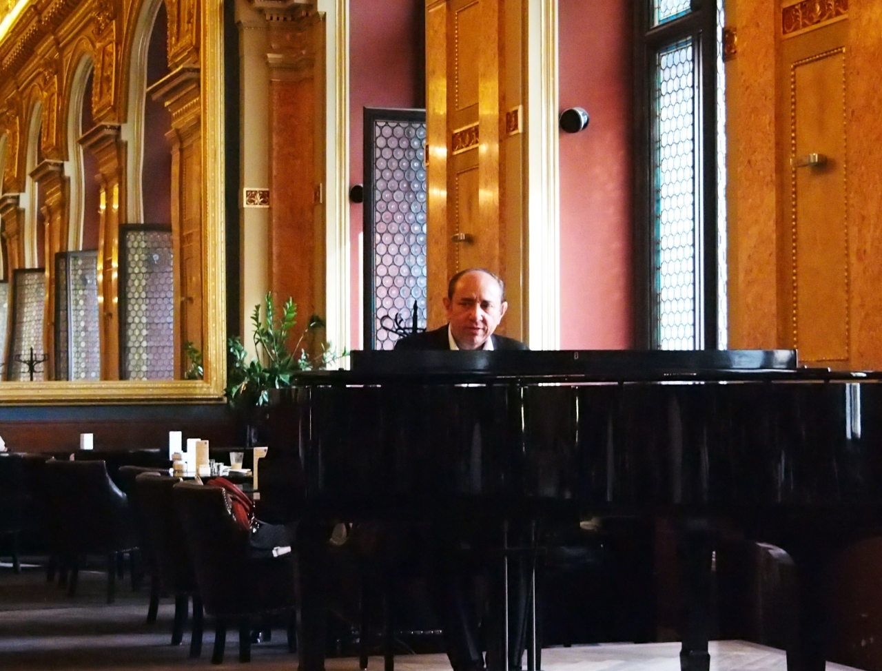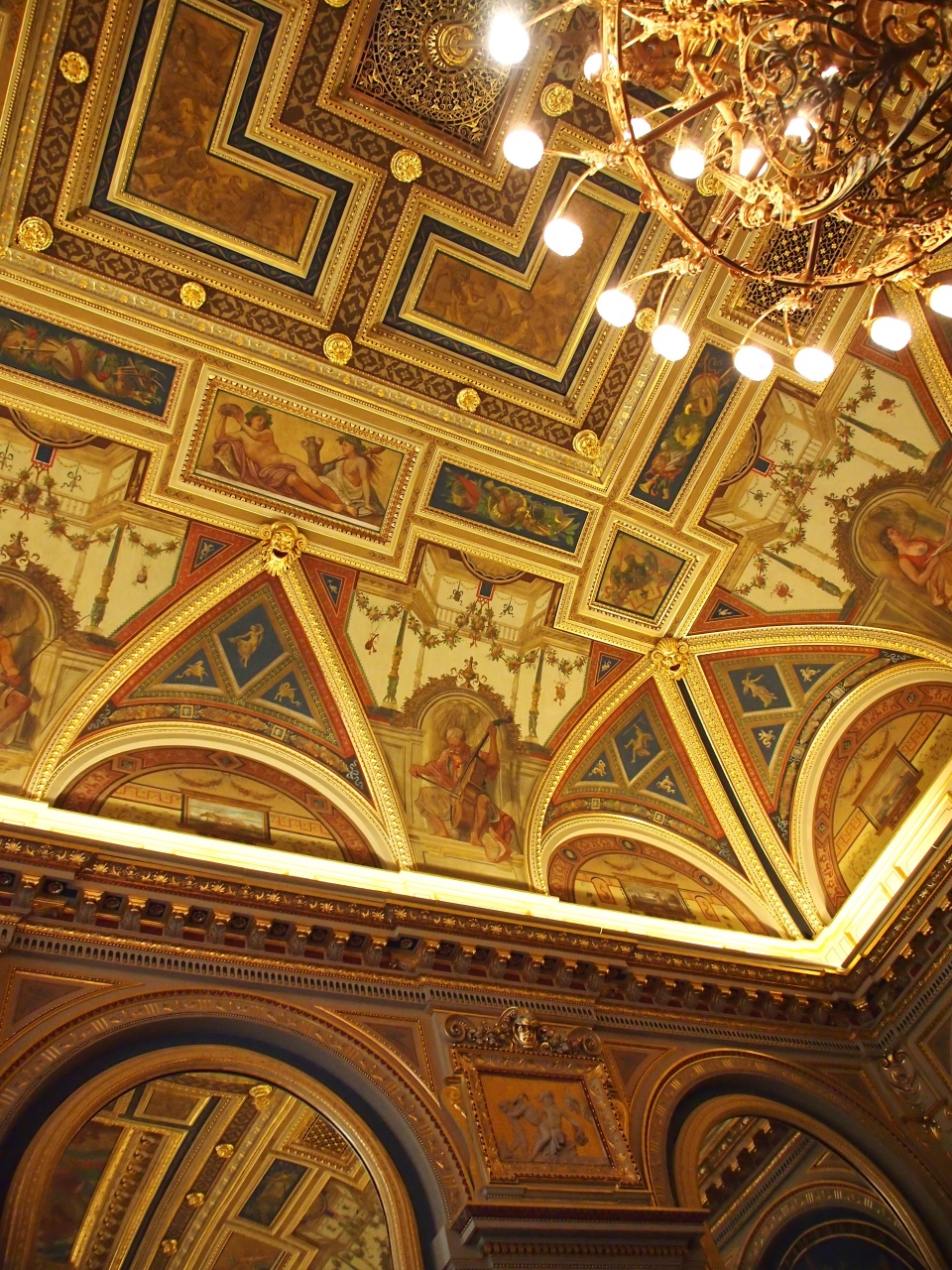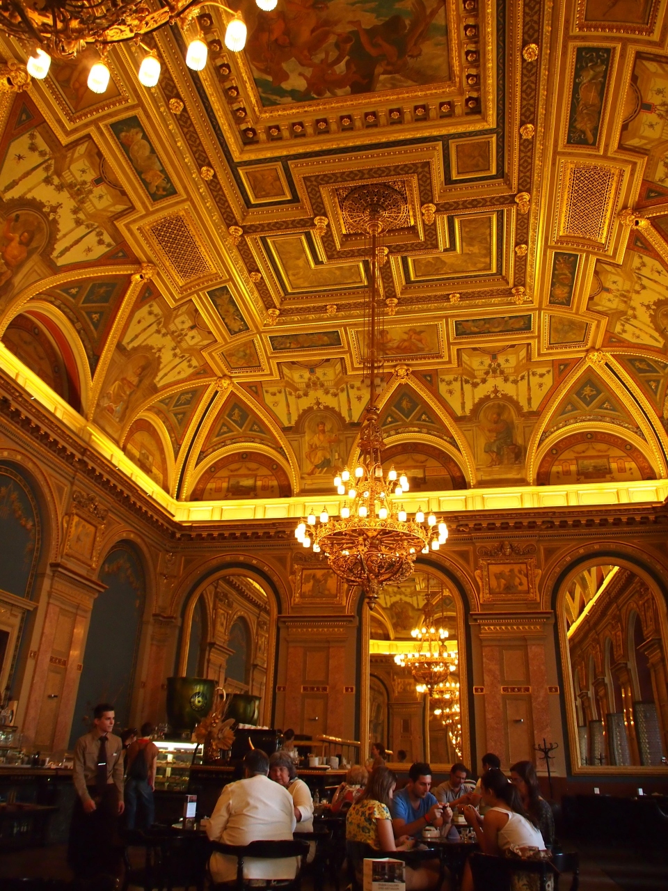 アールデコ調のビル1階にある本屋の奥のエレベーターを上がっていくと、ロッツ・テレムという、かつて舞踏会ホールであった豪華絢爛なカフェがあります。