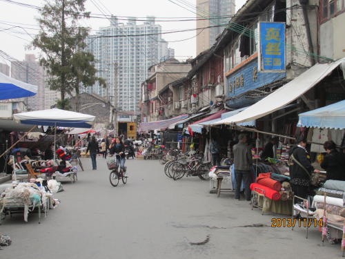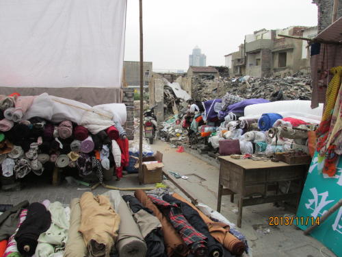 上海の十六舗・南倉路は廃屋の中を進んで行きます。昔も今も服飾関系の業者の集まった所。