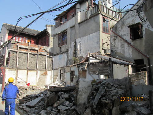 上海の下町・松雪街は解体撤去すべく破壊された住宅が並んでいます。