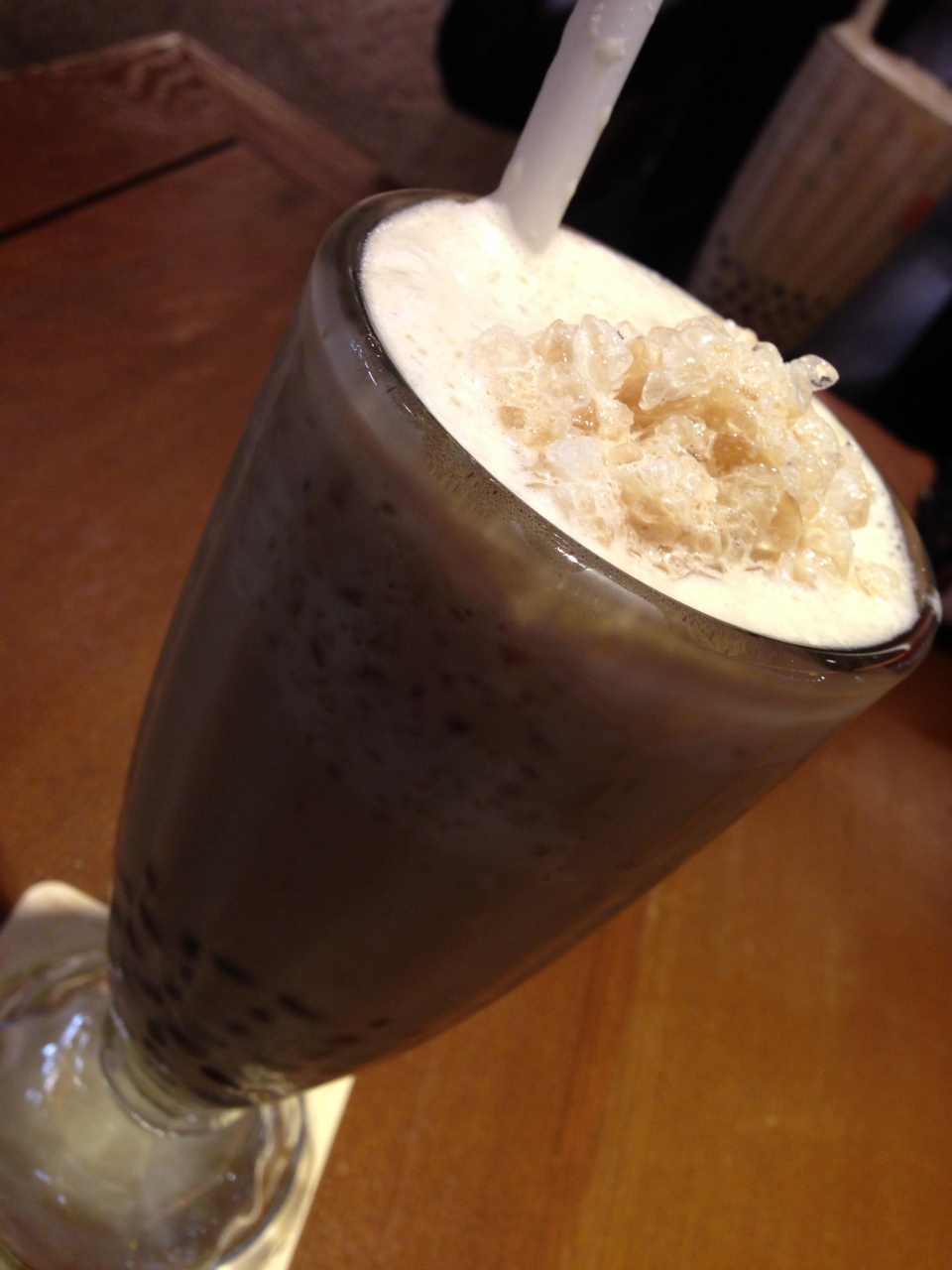 タピオカミルクティーは、タピオカがたくさん入っています。