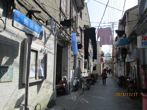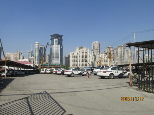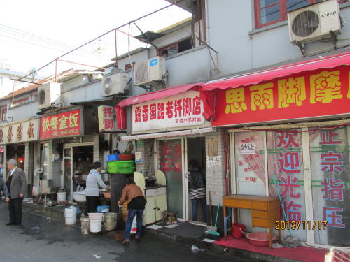 方浜中路を西側の中華路側から進みます。右側は商店街、食堂も多い。左側は再開発工事現場が露香園路まで続きます。この大規模な再開発工事は6年前に来た時は更地になってました。やっと基礎工事が始まりました。表通りは多少綺麗に成ってますが、路地の中は古い住宅のようです。河南南路に出ますと向かいは豫園の上海老街です。