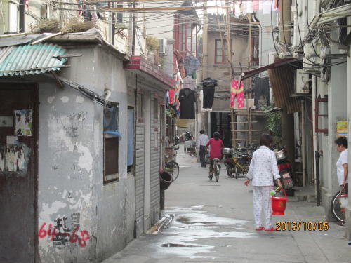 下町は一軒の大きな邸宅に十世帯以上の人が住んで居ます。一世帯当り夫婦で3~4畳です。当然部屋には台所、トイレ、シャワーはありません、台所は通路に小さな共同流しが有ります。シャワーは洗面器で体を拭きます。問題はトイレ、夜間、部屋に置いた馬桶(おまる)に用を足して、朝になると小便池に捨てに行きます。そこで洗って持って帰って来ます。これが毎日の日課です。捨てに行く職業もあります。最近一部水洗になった所もあります。
