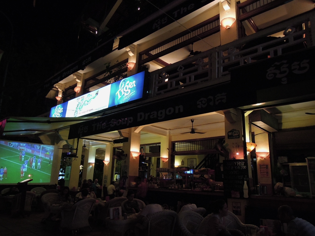 入り口にはモニターがあり、サッカーの試合が放送されていました。