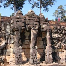 象のテラスは12世紀末にジャヤヴァルマン7世によって創建され、13世紀末にはジャヤヴァルマン8世により改修されたものです。正面の真東に伸びる道路はアンコール・トムの5番目の門「勝利の門」となっており、戦いに勝利して凱旋した兵士たちをこのテラスで出迎え、閲兵したのです。