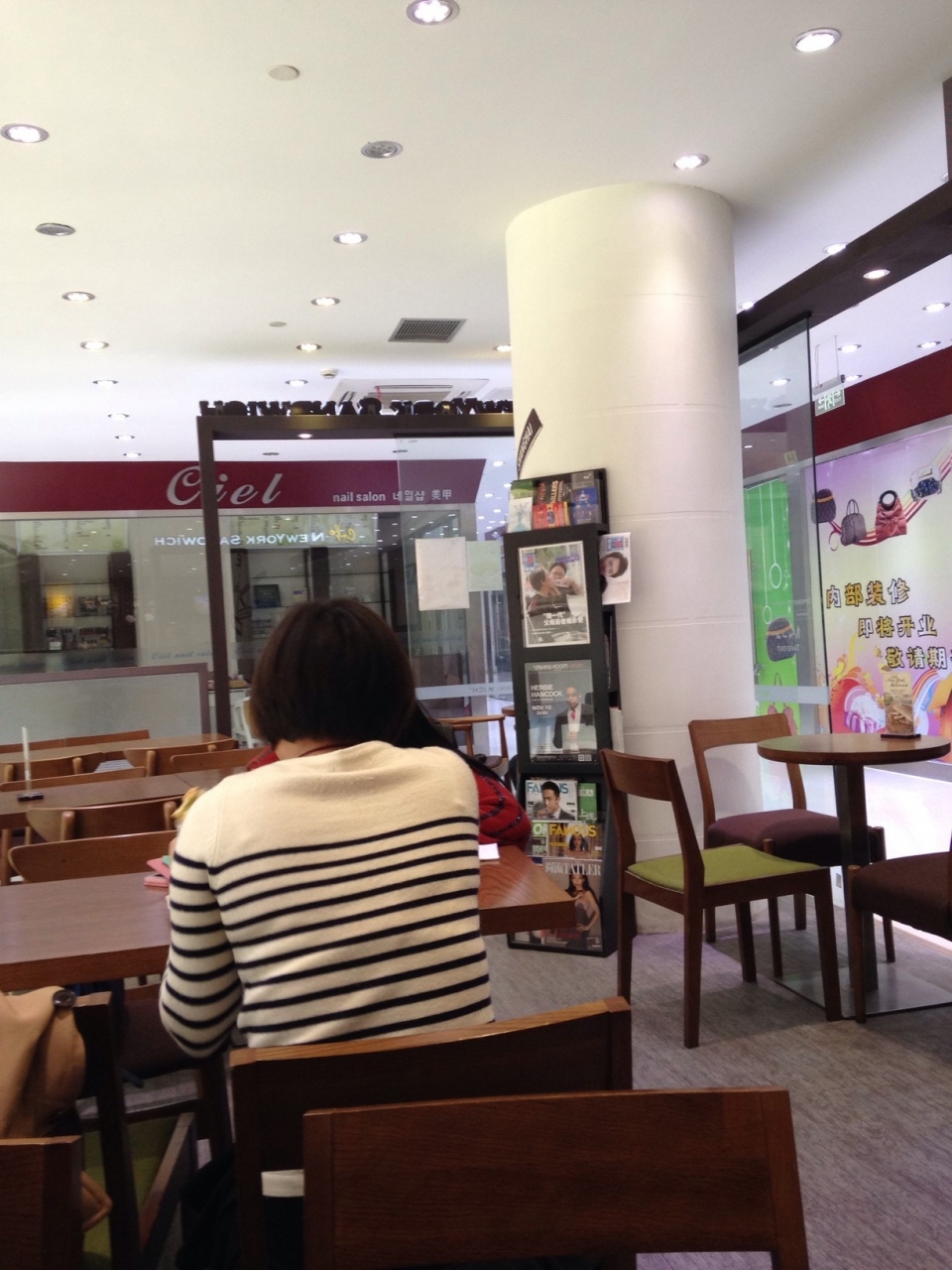 ランチタイムに伺うとお店はファストフードショップという感じでテーブル席が10席くらい。ちらほらとお客さんがいました。外国人のお客さんも半分くらいいました。ランチセットでホットドッグセットとサンドイッチセットにしました。お味は可もなく不可もなく。ホットドッグのケチャップはチリソースのようでした。コーヒーは大きなマグカップにたっぷりあります。お値段的には休めだと思いましたが、もう一回行くかと言われると分からないかな…?