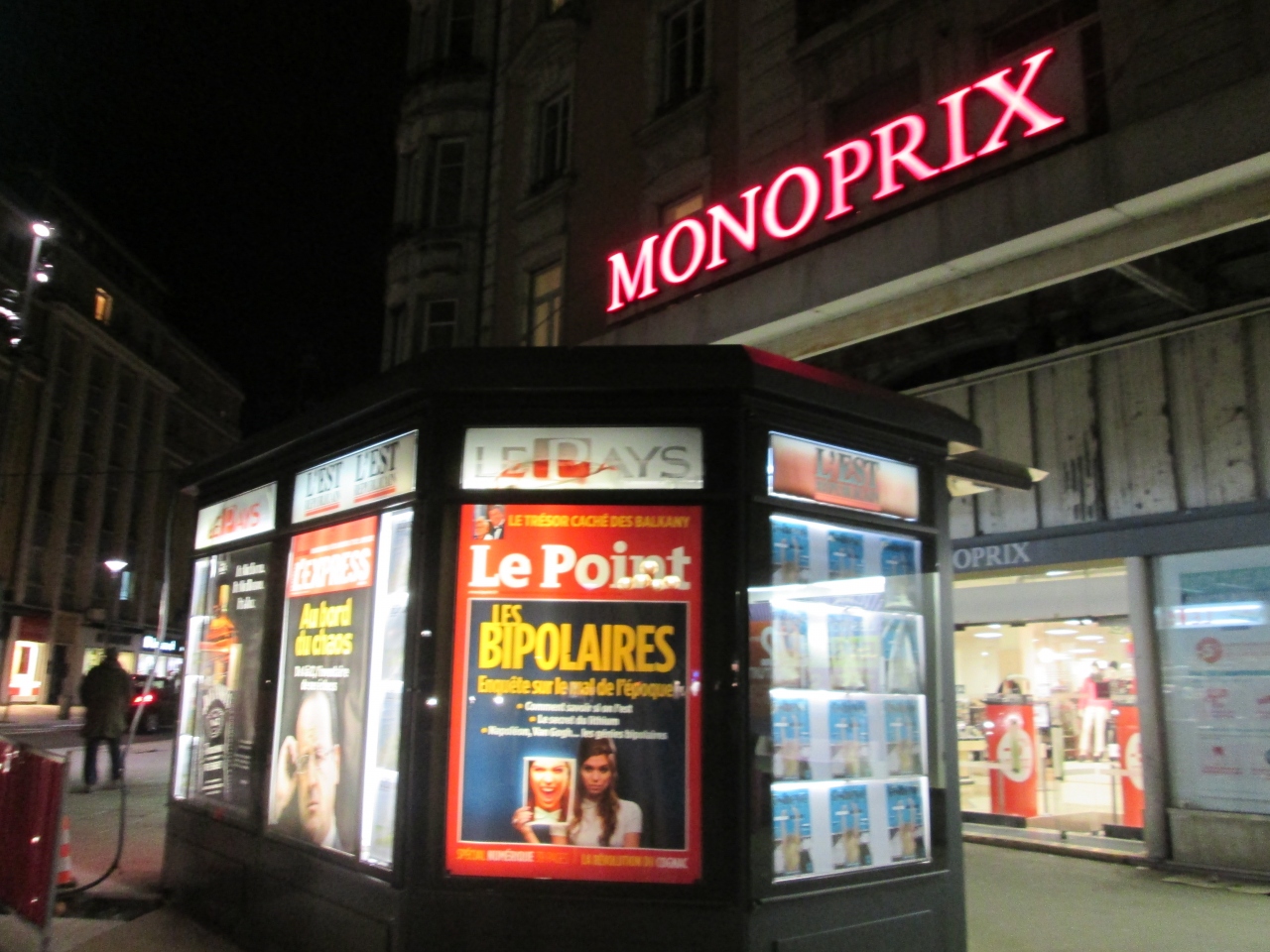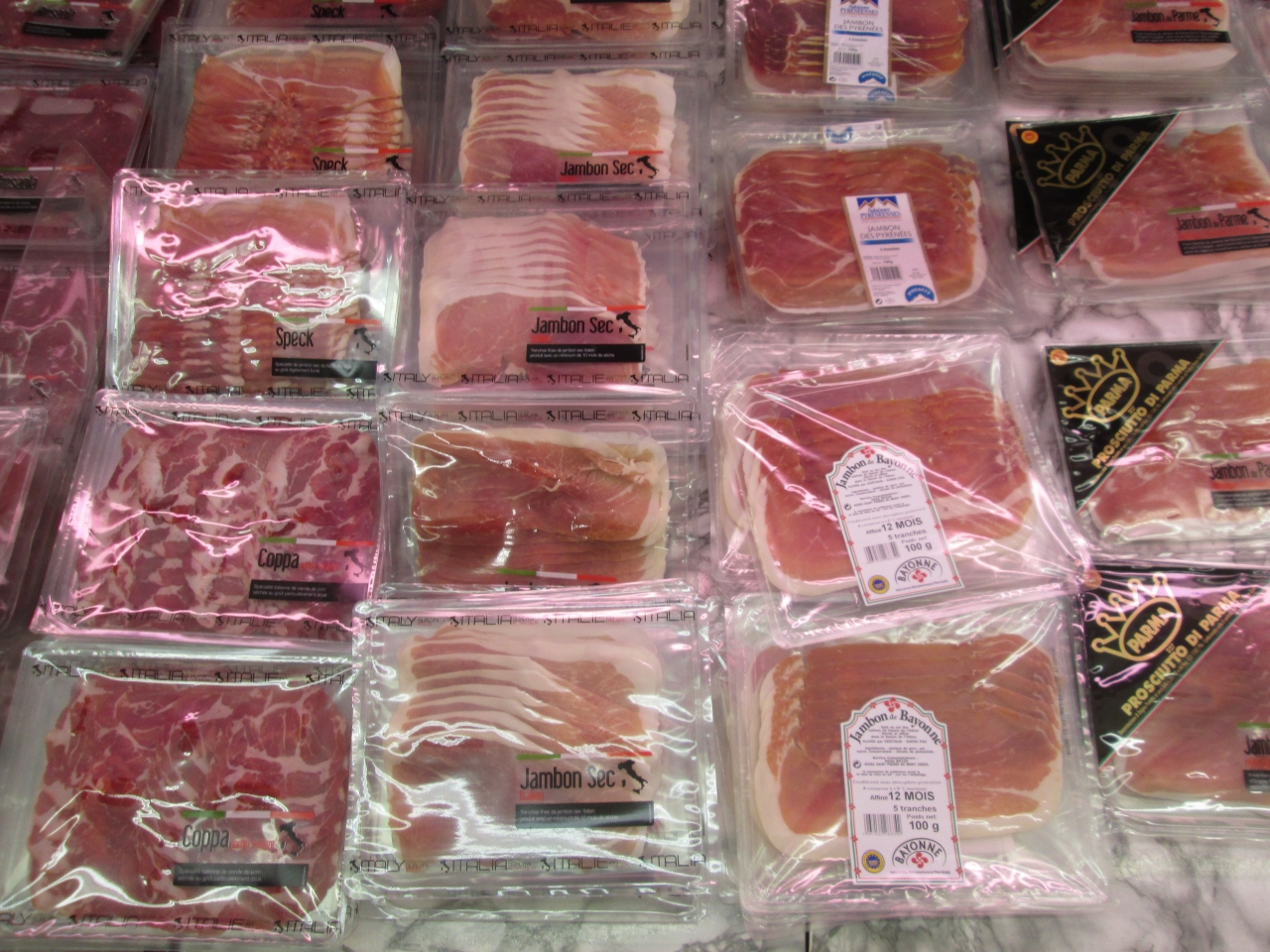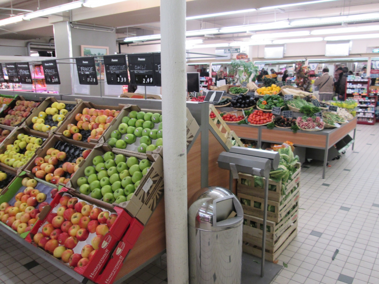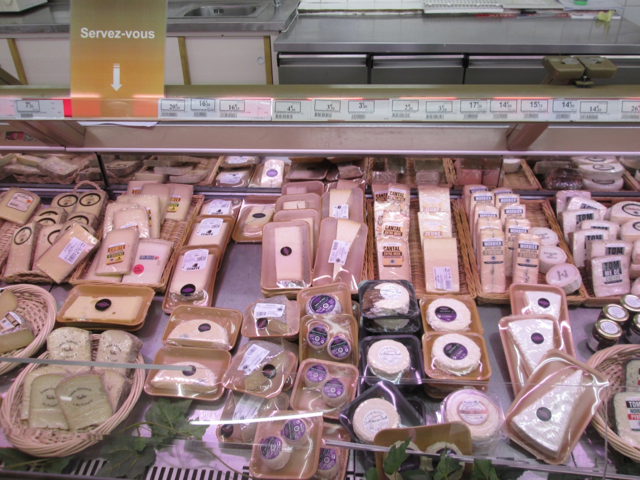フランス各地にあるデパートで地下にはスーパーマーケットがありました。空港で購入するよりリーズナブルな価格設定です。チーズ、パスタ、マドレーヌなどお土産に購入しました。買いもの袋は有料でレジに言わないともらえません。