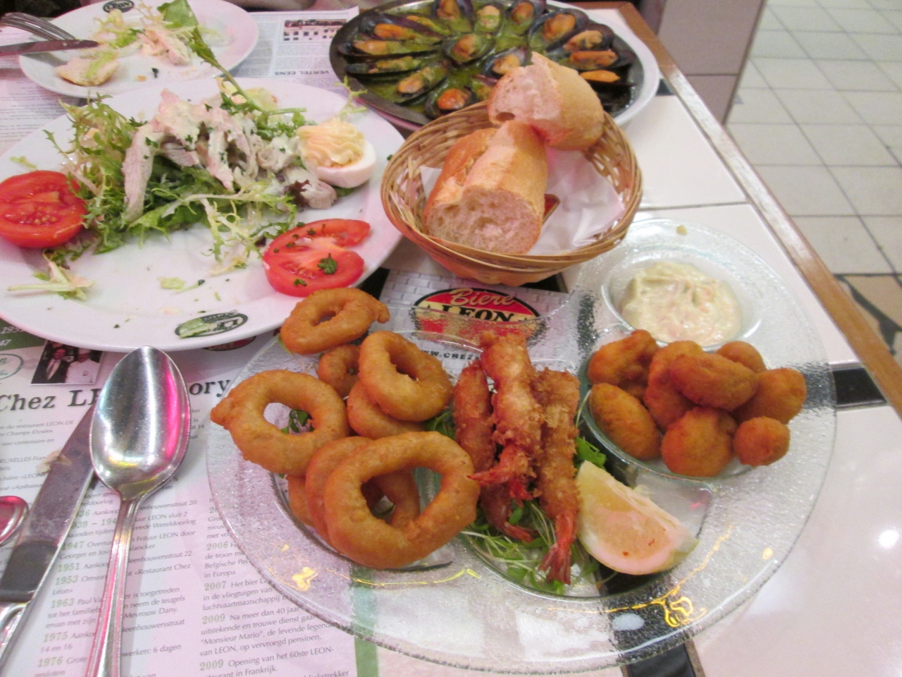 グラン・プラスの広場から徒歩で1、2分のところにあります。ムール貝はシンプルな味付けのものを選択しました。シーフードフライを注文しましたが、量が多かったので、ムール貝、サラダ、お酒だけでも良かったです。お客の3、4割ぐらいが日本人と言っても過言ではありません。