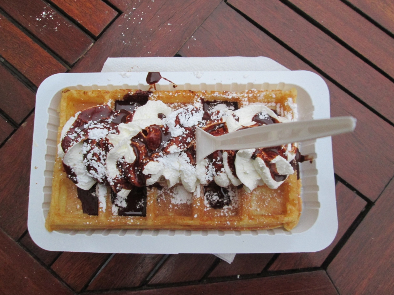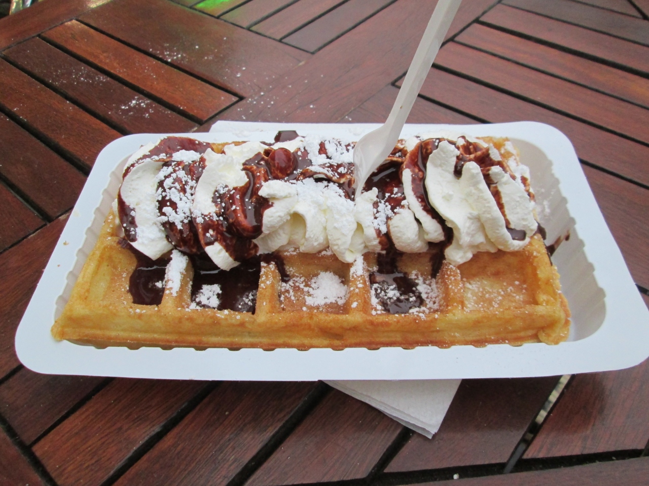 初ベルギー訪問で初ワッフルを食べました。グラン・プラスの広場から徒歩で2、3分のところにあります。食事時ではありませんでしたが、店内はかなり混雑していたので、テイクアウトし外で食べました。シンプルなトッピングを選択しましたが、おいしかったです。