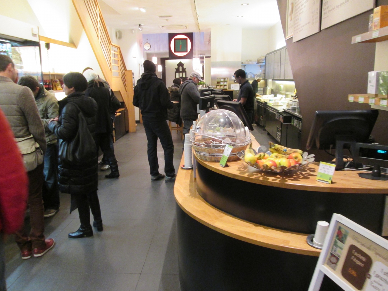 ベルギーの各地にあるセルフ式のカフェで、店で食べることやテイクアウトできます。ホテルのビュッフェやレストランでのベルギー料理はついつい食べ過ぎてしまいますので、昼食は抑えめにしたいところです。野菜のメニューが豊富でした。
