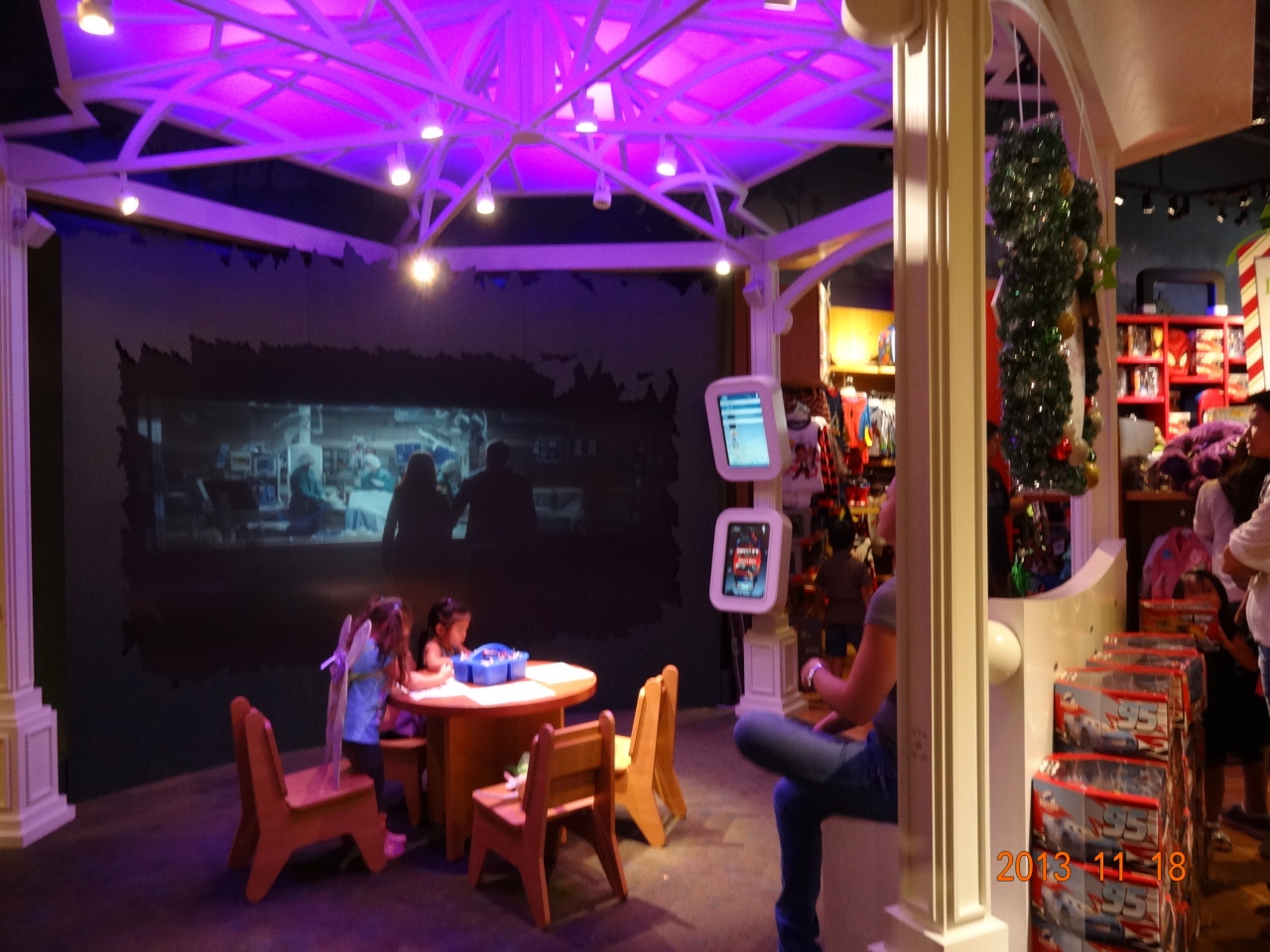 店内には、映画が上映されているブースがあるので、ママが買い物をしている間に、パパとお子さんが画面を見て過ごしていました。