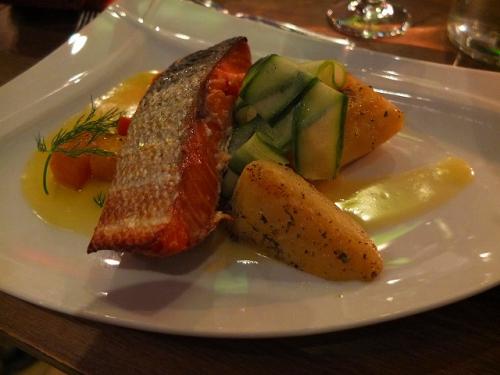 前菜に濃厚なスープを頂き、メインはトナカイのグリルとサーモンソテーを2人で頂きましたが、かなりボリューミーで、全部を食べきれませんでした。(コーヒーやデザートさえ入らない)