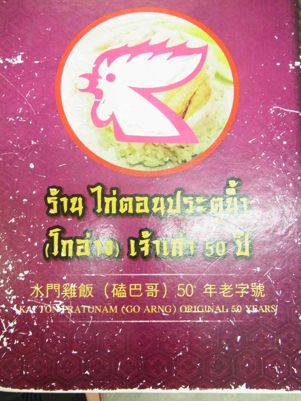 ビッグC付近から運河の発着所とその付近の露店を眺めながら歩き10-15分ほどで着く、ピンクのTシャツが目立つカオマンガイ屋です。