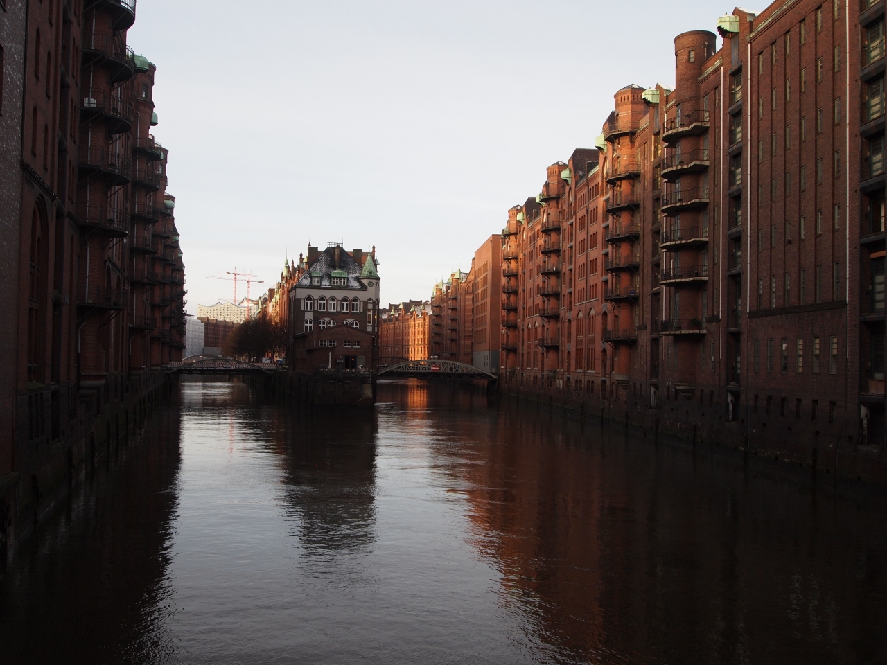 倉庫街はハンブルク中心からすぐのエルベ川沿いの運河、水路沿いにあります。