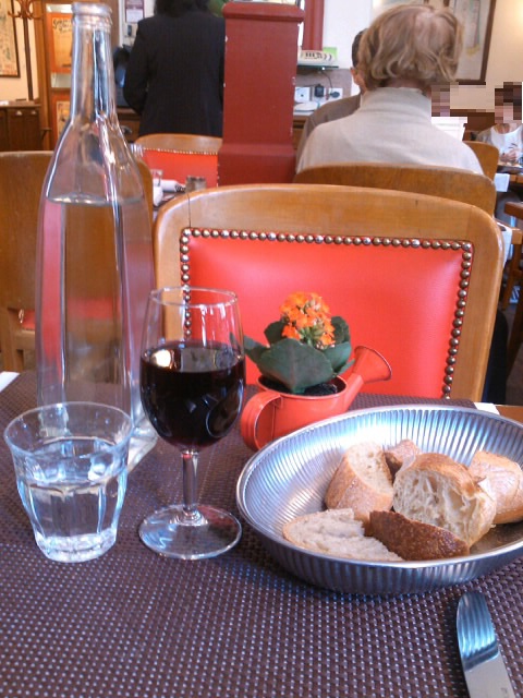 ランチのメニューをいただきました。前菜+メイン+1ドリンク(もちろん+パン)で19.80eur!ボリュームたっぷりの前菜とメインで十分お腹いっぱい。もちろんお味もフランスの定食の定番って感じでおいしいです。1ドリンクはグラスワインも選択できます。