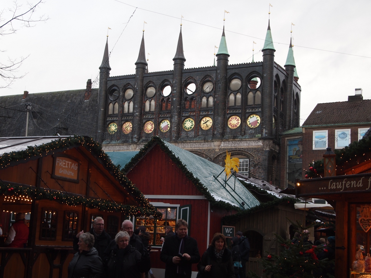 リューベック市庁舎はマルクト広場に面してL字型に建てられています。