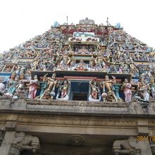 地元に根付いたヒンズー教の寺院で、観光地ではないが厳粛な気持ちになれる。中では靴を脱ぎ裸足でお祈りする。寺院は町中に数多くあるが、ここのゴープラムは見応えがある。しかし交通の便は良くない。マリーンビーチ周辺の鉄道駅から行きは徒歩、帰りはリキシャーを使用して訪問した。