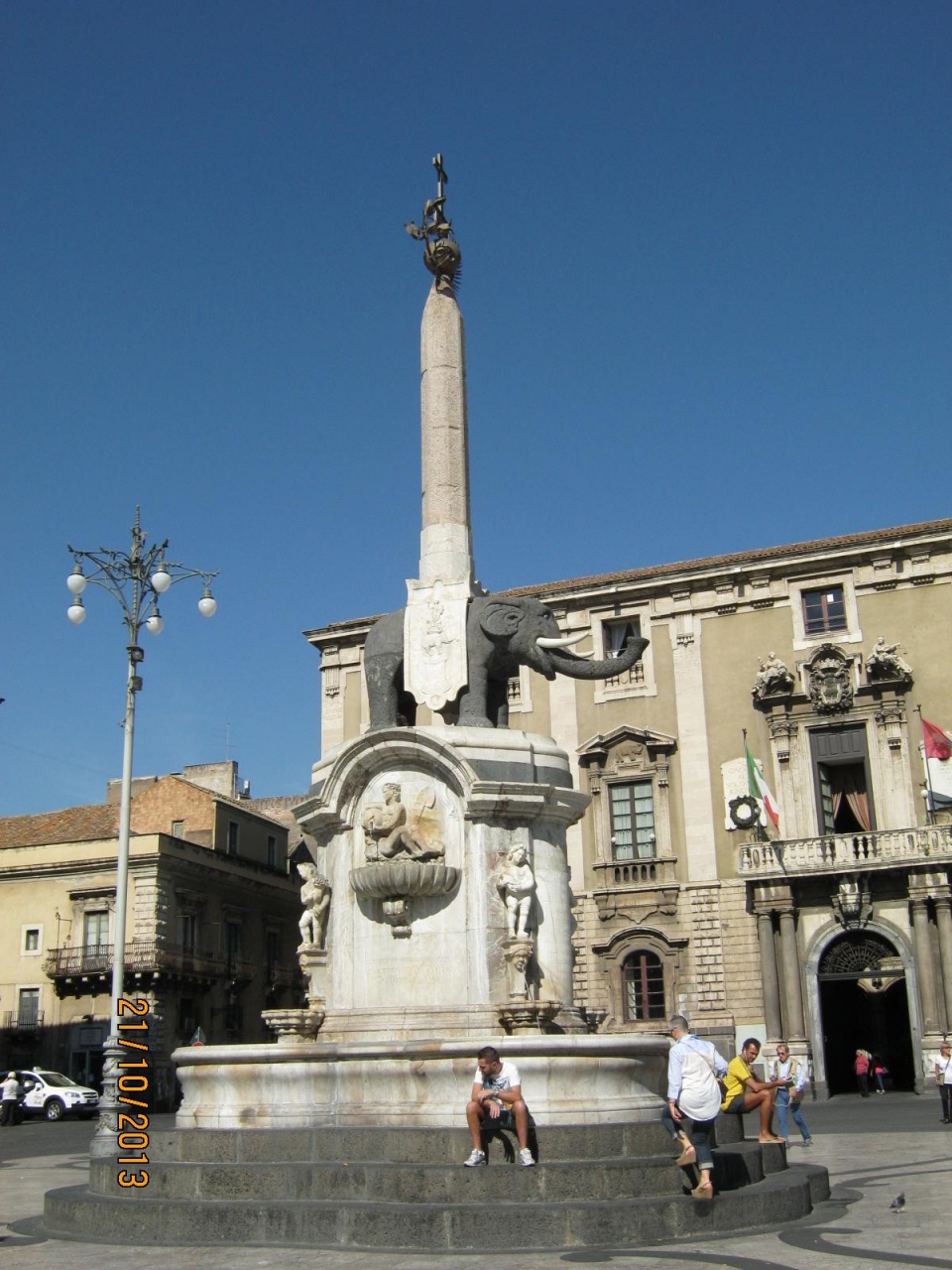 この広場はカターニア駅から西に約30分程度の場所にあります。東にドゥオーモ、北に市庁舎、南や西は魚や野菜の市場や店があります。広場の中心には象の石像の上に町の守護神であるアガタ像をのせたオベリスクが立っている象の噴水があります。