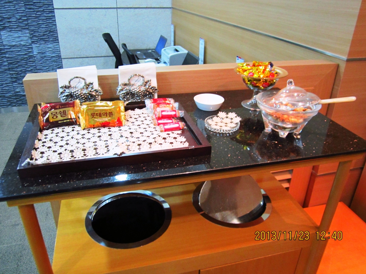 金海国際空港の制限エリア内の免税店などのあるフロアーの上の階にあります。プライオリティーパスを持っているためビジネスクラスのフライトでなくても利用できました。KALラウンジも隣にあります。飲み物やちょっとした食べ物があり、搭乗時間までゆっくり過ごせて快適です。