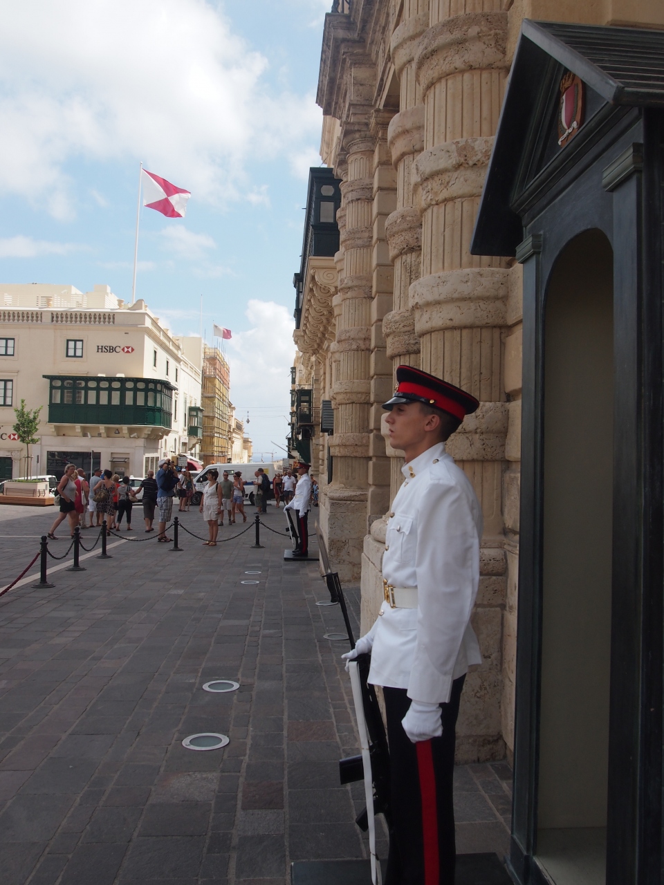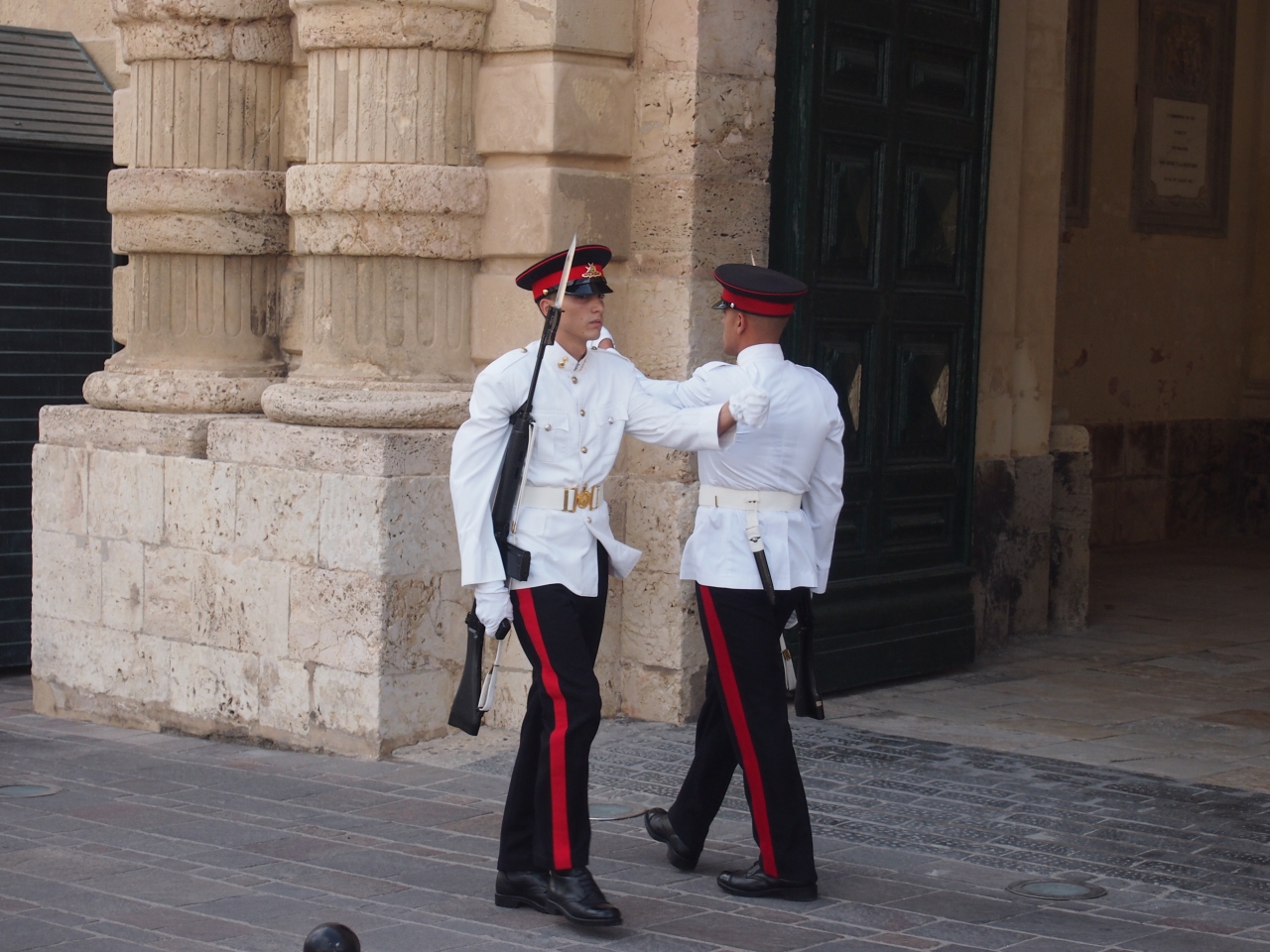 騎士団長の宮殿がある広場ですが、路上にたくさんの小さな噴水があって、自由に足をぬらすことが出来ます。夏の暑い午後にはとてもすずしげでした。騎士団長の宮殿入り口もこの広場に面していて、私達は運良く衛兵の交替式を見ることが出来ました。