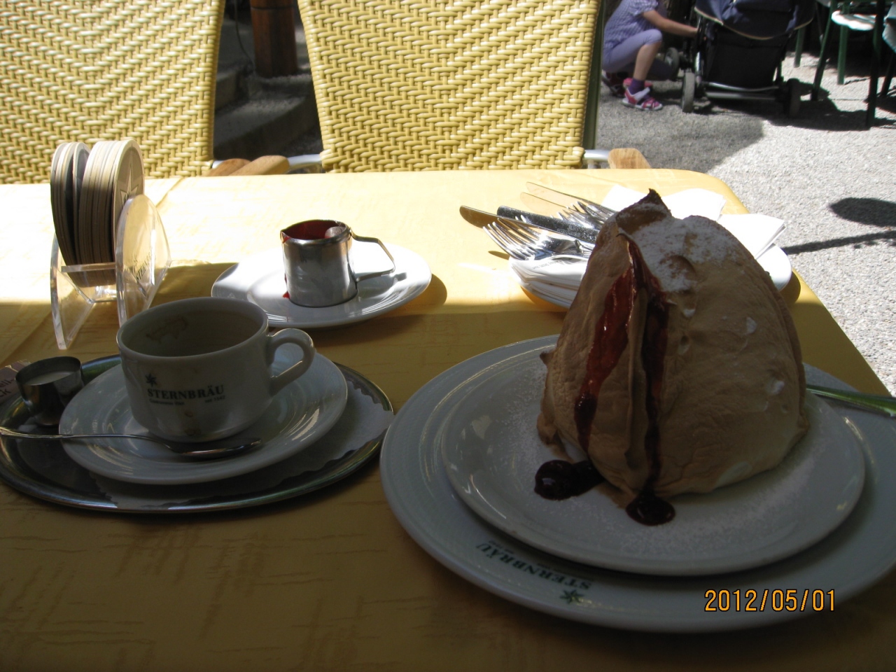 有名なザルツブルガーノッケールが一人前の量で注文できるとガイドブックにあり、中庭で気持ちの良さそうなレストランだったため休憩をかねて訪問、注文した。しかし一人前と言えども巨大、味は淡白で特筆するものではない。完食できず断念。 別の日に昼食で再訪しヴィーナーシュニッツェルとビールを注文。これは美味。ウエイターの応対も良く、素敵なランチタイムを過ごすことができた。