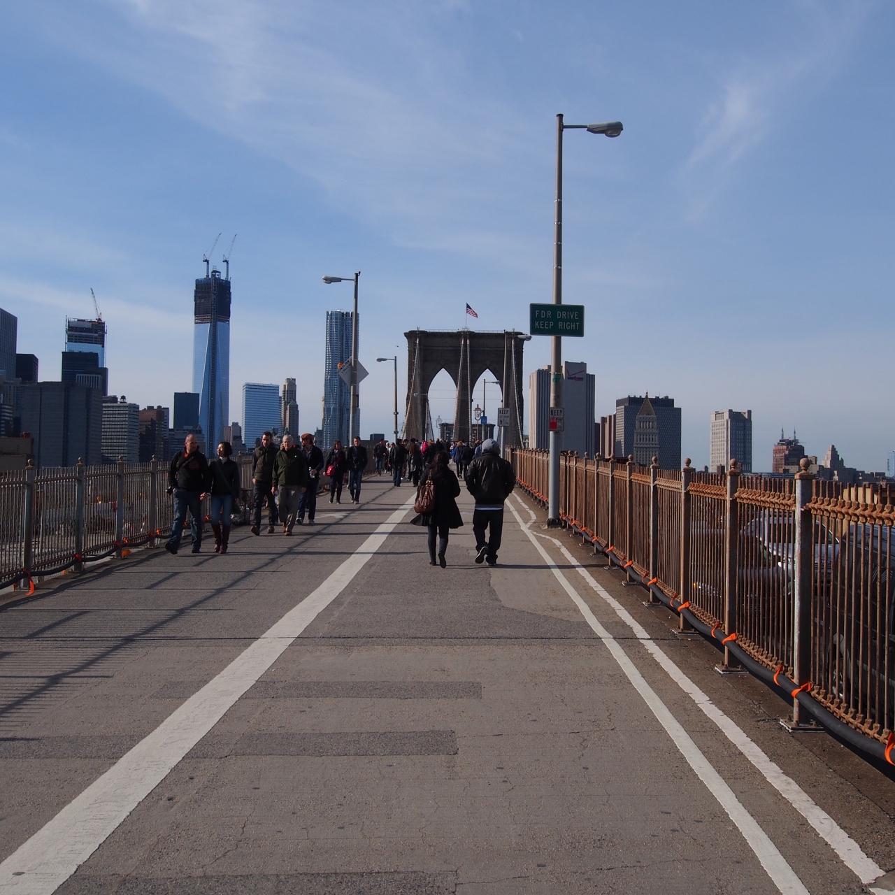 ブルックリンとマンハッタン島を結ぶ橋で、両方の島を眺められる