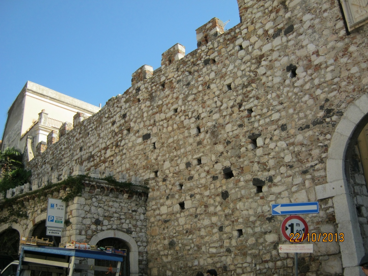 城壁は西のカターニア門を囲むように残っています。東のメッシーナ門の周りには今は城壁はないようです。この町は南は絶壁であり北は険しい絶壁になっています。城壁はそのため南北の狭いエリアを東と西に建てられたようです。そして今は西側にその名残が見られます。