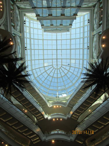 上海市普陀区中山北路3300号、近寧夏路、地下鉄3・4・13号線の金沙江路駅前にに建設されていた、市最大規模の複合商業施設である大型ショッピングモール「上海月星環球港(グローバルハーバー)」が、13年7月5日に竣工しました。総面積48万平方?を誇る、その内ショッピングモールは地下2階から4階までの32万平方?です。日本の百貨店の最大が10万余平方?なので3倍程の大きさ。横幅は復原東京駅丸の内と同じくらいあると思われます。東京駅と同様にドームが左右・中央と3ヶ所あります。ドームの高さは地下2階から地上4階までと東京駅の3階と比べ倍近い高さを持っています。地下3階にも旅遊スペースがあり、複合商業施設は商業、旅遊、文化”三大功能として5ツ星ホテルや高級ブランドブティック、レストラン、フィットネスクラブのほか、オフィスやサービスアパートメント、美術館、スケート場などが入居する予定だそうである。ほかにも屋上には3万平方?以上にも及ぶ空中庭園、2200台を収容する駐車スペースを設ける予定だそうです。ともかく大きいのにびっくり、全体をヨーロッパ調のデザインで統一しており、成金趣味的で伝統的な趣に欠けます。