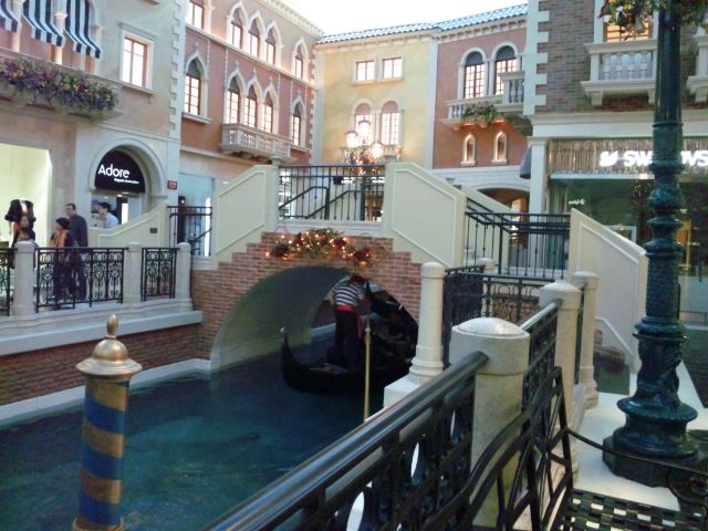 水路にゴンドラが浮いててお客さんが一組乗ってました