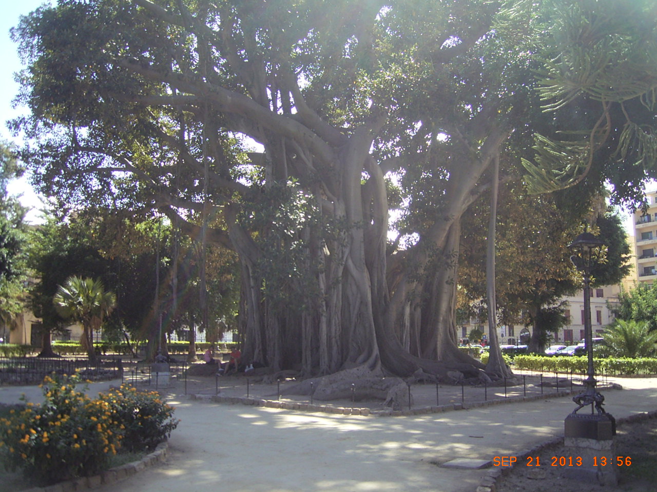 町の東で港近くにあります。パレルモ駅からは20分程度です。キアラモンテ宮殿に接したマリーナ広場の中にある静かな庭園です。港が近いので海の香りが漂うようです。庭園は木々が整備されていて、ゴムの木でしょうか根がクモように分かれた大木がいくつかあり木陰が気持ちいいです。
