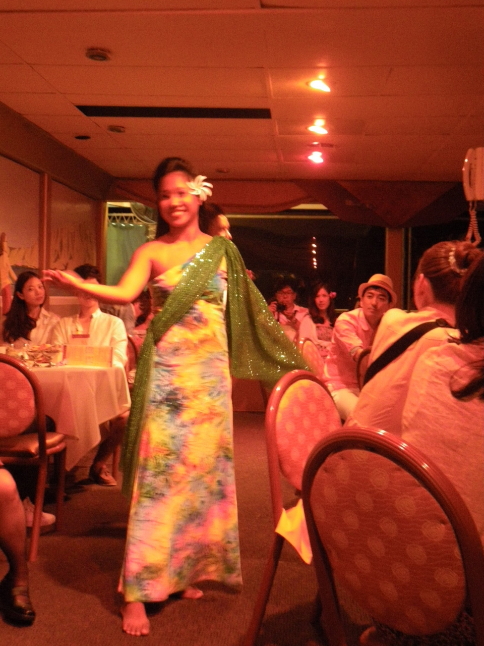 ショーもディナーもそれなり・・・サンセットはとっても綺麗ですし、海からのワイキキはとても素敵です、きっと新婚さん用ですね^^;