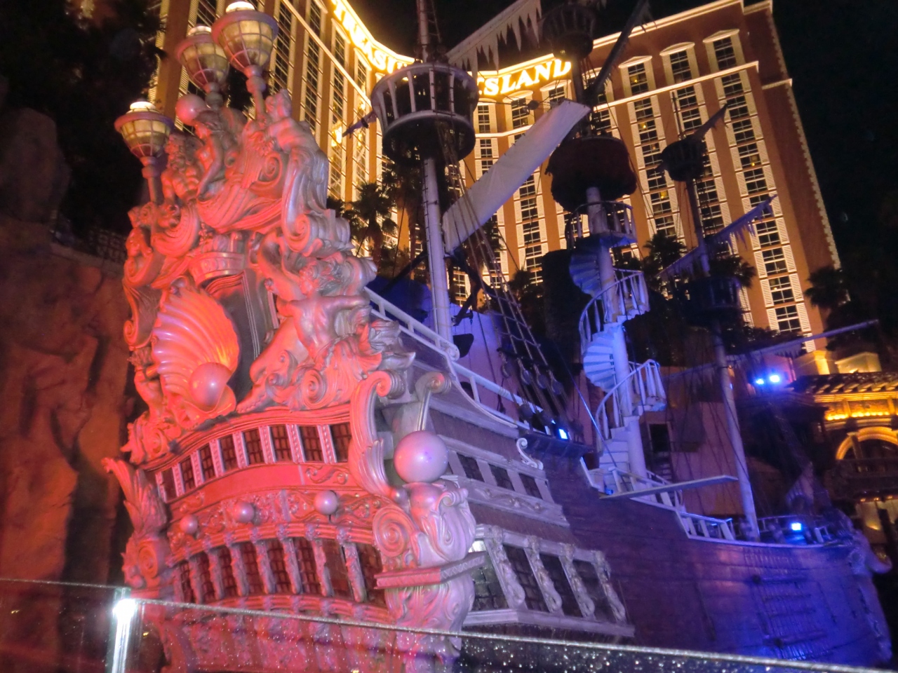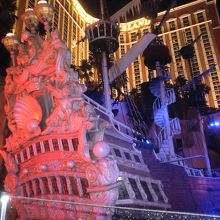 トレジャーアイランドホテルの前で、一日に4回、無料で行われている海賊ショーです。