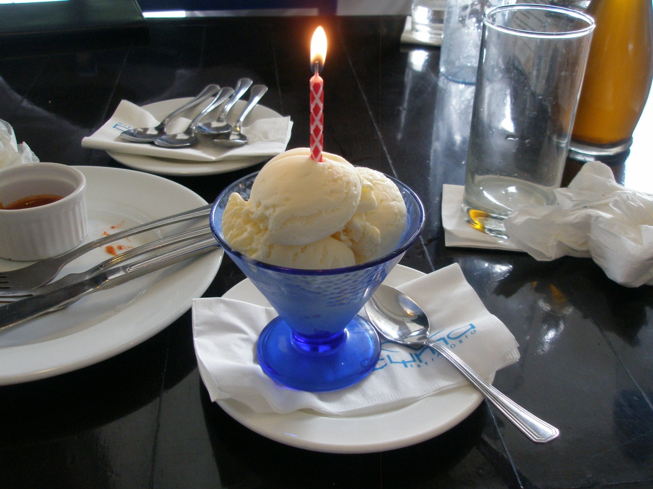 事務所の隣にあるアヤラセンター。昼食は必ずこちらを利用します。各国の料理があり、どのお店も美味しいです。今回は誕生日に近かったのでおんなお祝いも(写真参照)