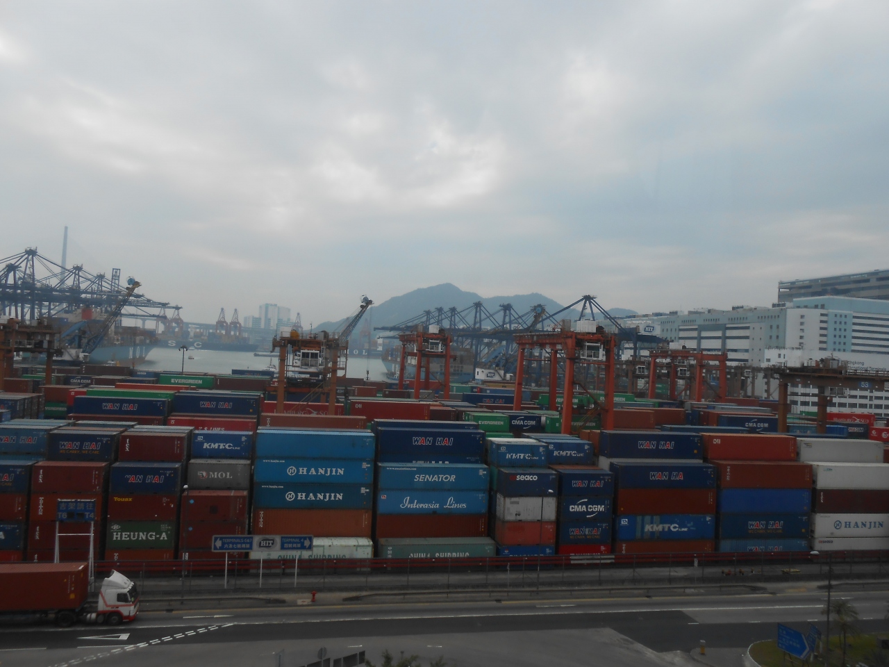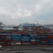 コンテナ倉庫や貨物ターミナルが並び香港湾に比べると閑散としていますが