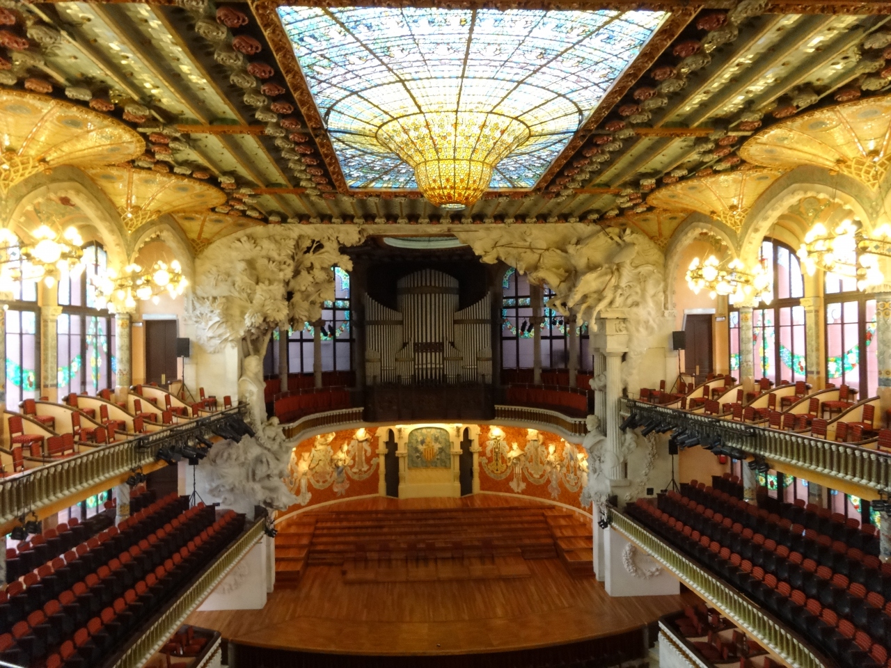 ドメネクが建設した音楽堂です。建設当初は、音が外に漏れていたとのこと。中はガイドツアーで入れます。中に入ると非常に明るい音楽堂です。(オペラハウスは暗いイメージでしたがここすごく明るい印象でした。)パイプオルガンも聴けました。この音楽堂は外も中もすばらしいと思います。音楽堂の中の彫刻装飾もステンドガラスもすばらしかった。