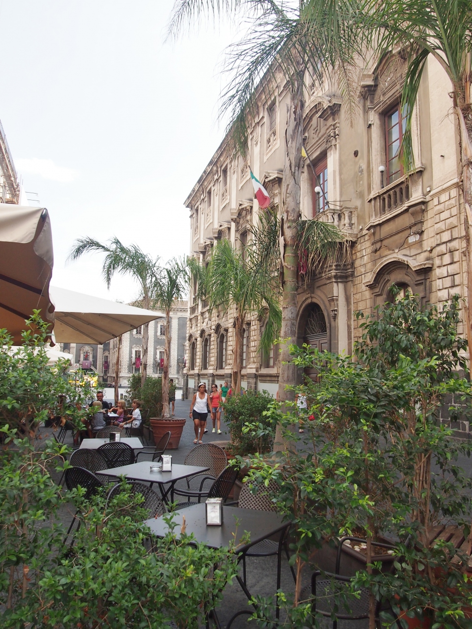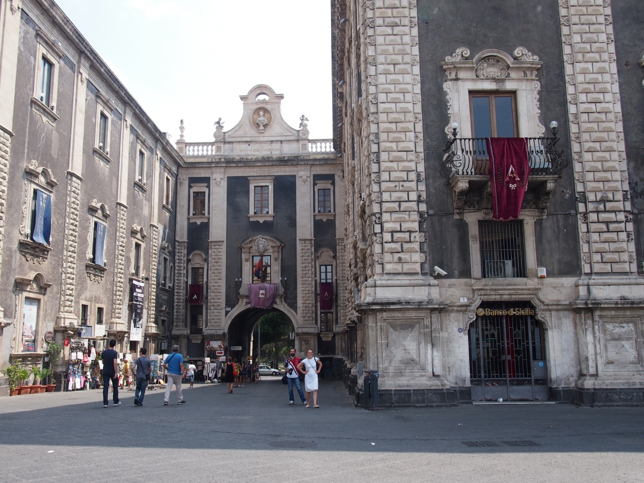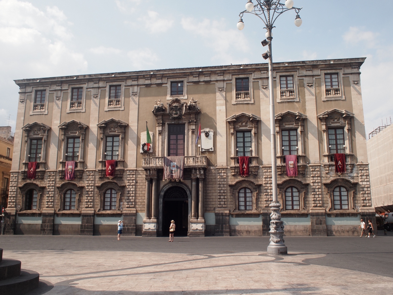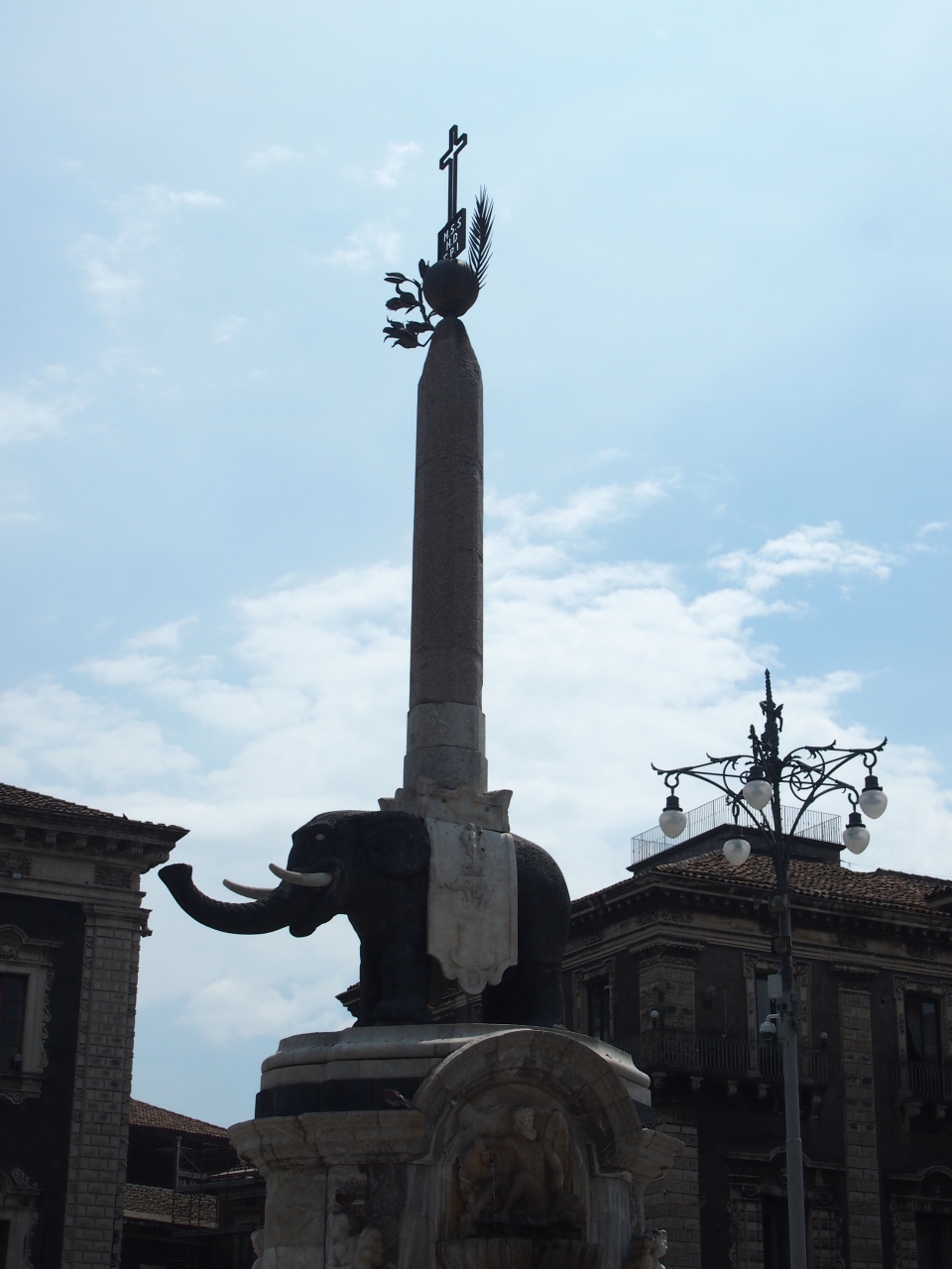 カターニアのシンボルとなっている象の噴水(エトナ山の溶岩やエジプトのオベリスクが使われています)や、バロック建築の美しい建物が建ち並んでいる広場です。観光列車(ミニトレイン)もとても可愛くて、広場と調和しています。