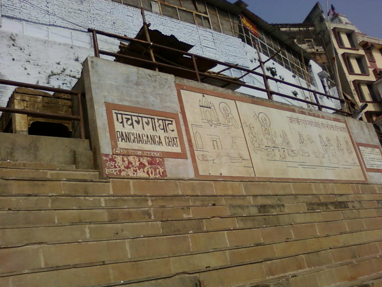 パンチガンガー・ガートは、とても有名なガートです。ガンガー、ヤムナー、サラスヴァティー、ドゥーパパーパー、キナーラーの5つの河が合流する聖書で、10月になると死者が迷わず帰ってくるように灯篭をつけた竹ざおが立てられることで有名です。