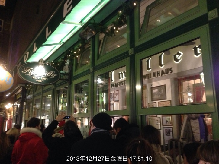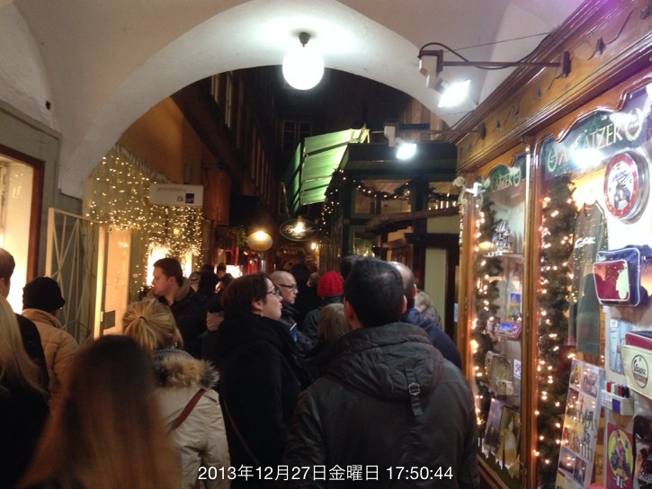 ウィーンにはじめて来たときに、ウィーンっ子の友人が連れてきてくれた店。こんな狭苦しい通り抜け道に?と驚くほど。行列のできる店があるとは...。店に入ると冬でも寒さが吹っ飛び、夏なら汗が吹き出す混み具合。