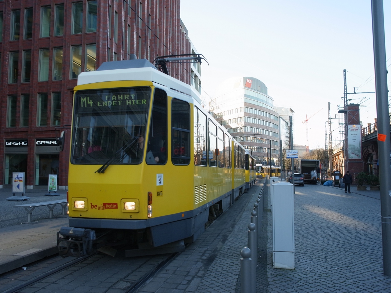 旧東ベルリンを走るトラムです。観光客になじみのある場所ではあまり見かけることがありませんが多くの路線では5-10分に一度という頻度で走っていて非常に便利に使うことができます。アレクサンダー広場駅周辺はトラムの一大ターミナルとなっていて多くの路線が発着しています。