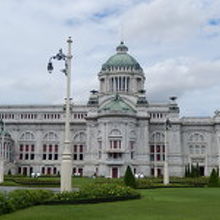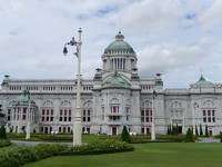 アナンタ・サマーコム宮殿は国王一家が住む王宮や行政府、首相府などが並ぶエリアにある。テーウェート桟橋からトゥクトゥクで50バーツ、約10分だった。ラーチャダムヌーンノーク通りという大きな道の突き当りに、突如、大きな白い優雅な姿をした建物が見えてきた。まるで西洋にある宮殿のようで、タイにあるのが不思議な感じだった。ウィマンメーク宮殿を生活の場にしていたラマ5世が、迎賓館として使用するために建設したそうで、迎賓館として、国会議事堂として利用されていた。訪れたのは月曜日で残念ながら休館日、内部の見学はできなかったが、次回は是非入場したい。