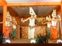 シェムリアップの繁華街、パブストリートにある「テンプルクラブ」は1階は大音量の音楽が流れるクラブだが、2階は落ち着いたレストランとなっていて、ここで毎夜、アプサラダンスが催されている。ショーチャージは不要で、食事か飲み物をオーダーするとショーが見れるのでお勧めだ。ショースペースは「クーレン2」よりコンパクトなので、踊り子が近くで見れとてもよかった。食事の値段も良心的で味もよかった。