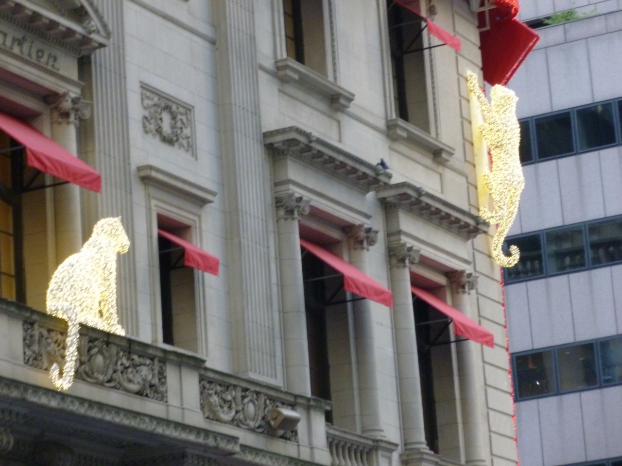 素敵!”カルテェ”のマスコットシンボルの豹が、店外観の壁に2匹がへばりついて、金色のイルミネーションで輝いていました。店内には、高価な品物が沢山、陳列していますが、いつか、買いたいと、ここは見るだけでした。