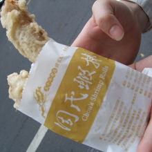 蝦巻を2本、紙の袋に入れてくれるだけですが、すぐに食べるのでOKです。