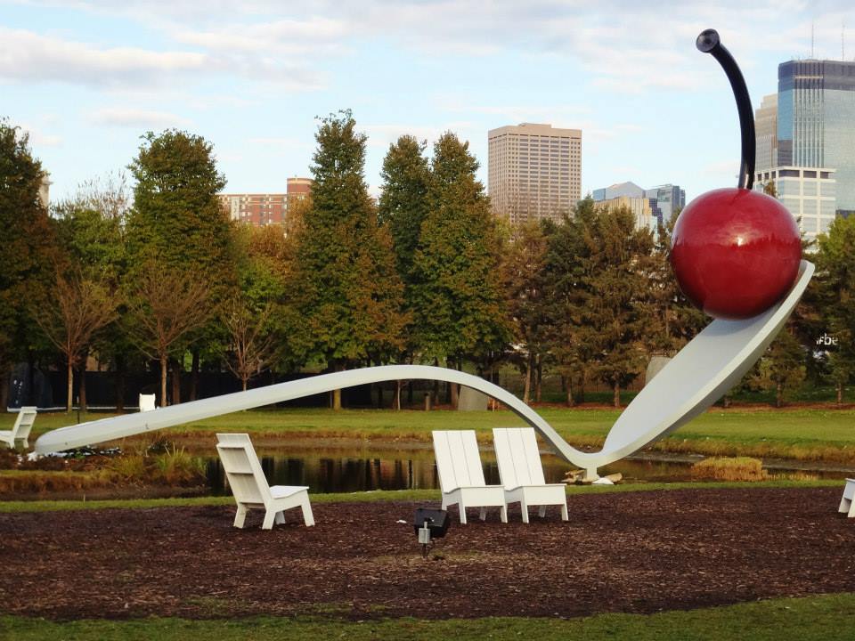 観光名所が少ないミネアポリス。ミネアポリス在住の友人のアドバイスでここに行きました。彫刻庭園には日本人の方が作成された彫刻もあるそうです。がやはり何と言っても一番の見所は特大スプーンの上にさくらんぼがのせられた、かわいいオブジェ。彫刻庭園の真ん中に位置し迫力満点です。